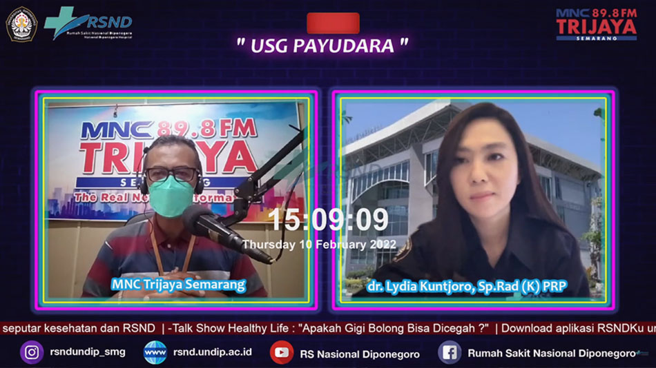“USG Payudara relative mudah ditemukan alatnya di mana-mana ada. Bagi para ibu maupun remaja perempuan apabila ingin USG payudara disesuaikan dengan siklus menstruasi. Dan jika mengalami infeksi di payudara jangan dianggap remeh karena bila dibiarkan akan meluas kemana-mana. Kita harus mulai care terhadap payudara, periksalah payudara sendiri setiap bulannya, periksa pada hari ke 10 dari hari keluar darah terakhir di bulan itu, kenali payudara, jika ada sesuatu yang berubah segera lakukan pemeriksaan ke dokter dan bila perlu kita lakukan pemeriksaan USG payudara” pungkas dr. Lydia (Tim Humas UNDIP)