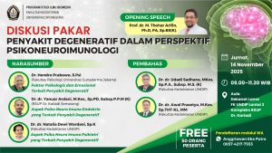 Program Studi Magister Ilmu Biomedik Fakultas Kedokteran Universitas Diponegoro (FK UNDIP) menyelenggarakan Kuliah Tamu dan Diskusi Pakar bertema “Penyakit Degeneratif dalam Perspektif Psikoneuroimunologi (PNI)” pada